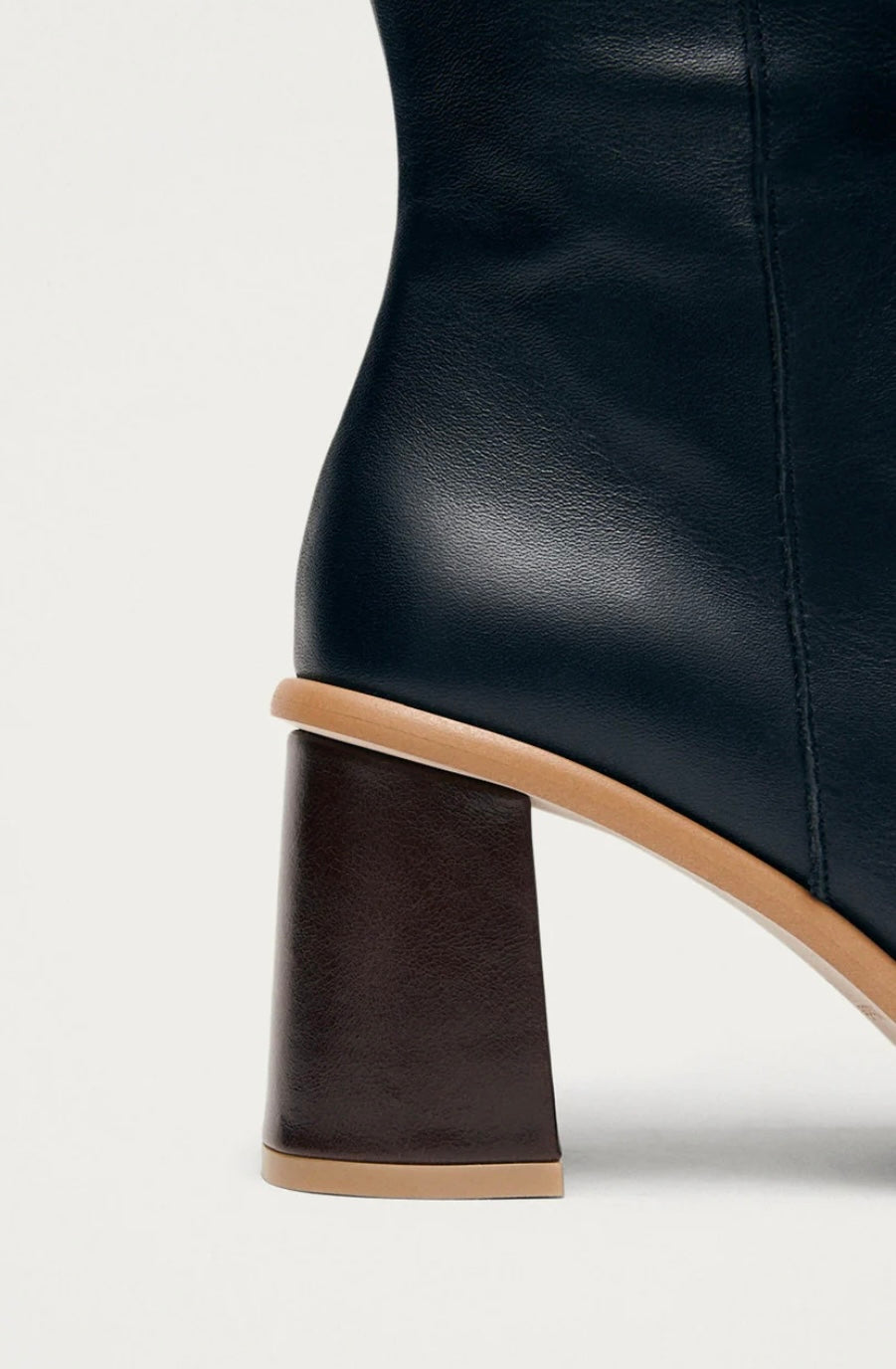 Zwarte lederen enkelboots met comfortabele blokhak. Deze silhouetten past perfect bij al je outfits. Dit is de perfecte all-year-round schoen die je zult dragen seizoen na seizoen.