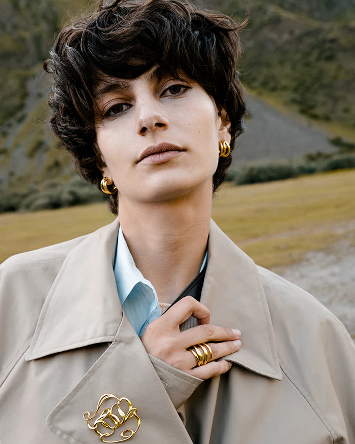 De Monogram-broche is gemaakt van delicate metalen lijnen, met het getransformeerde ANNALOCH-monogram om een minimalistisch maar sculpturaal stuk te creëren dat elke garderobe aanvult. Of het nu dagelijks wordt gedragen of als accent, deze broche voegt een vleugje moderne elegantie toe aan de drager. De gladde metallic afwerking weerspiegelt de verfijnde en minimalistische esthetiek van het merk.