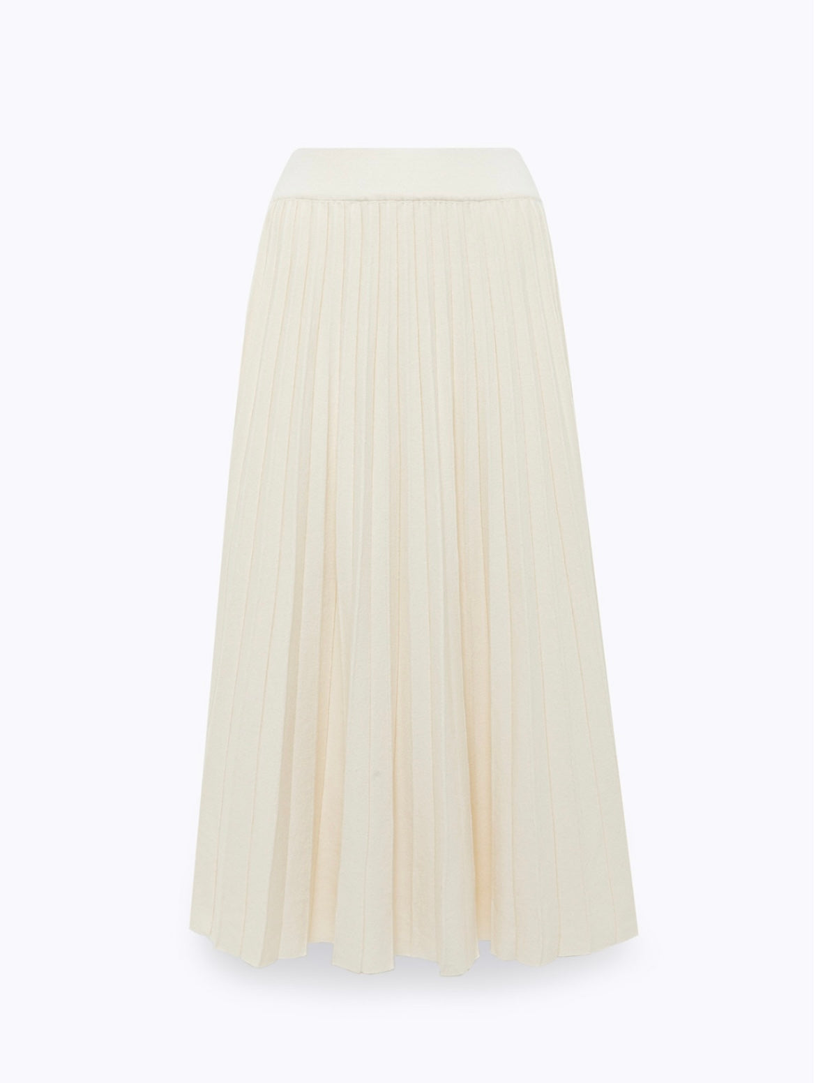 De elegantie van plooien. Deze rok in viscose heeft een elastische tailleband. Draag hem van dag tot avond.
