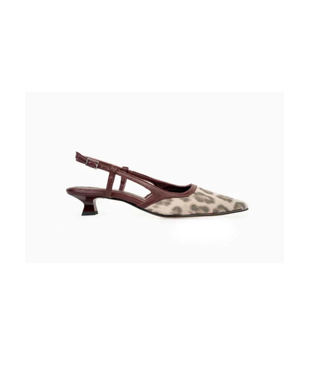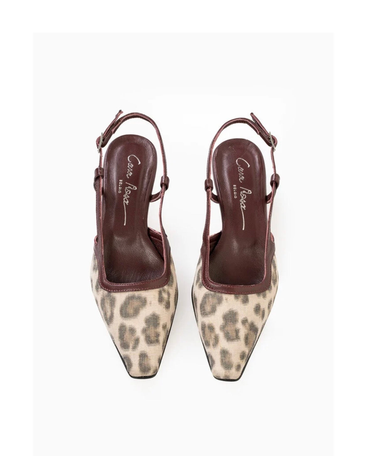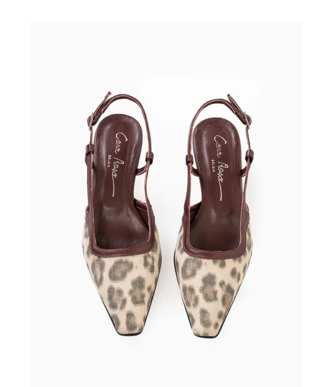 Het ontwerp van CARA ROSA's 'Katleen' slingback pumps is al chic sinds de jaren '30 en het verdict over deze vintage geïnspireerde stijlen zal niet snel veranderen. Ze staan op een 30mm kitten heel en zijn gemaakt van luipaard canvas en bordeaux nappaleder