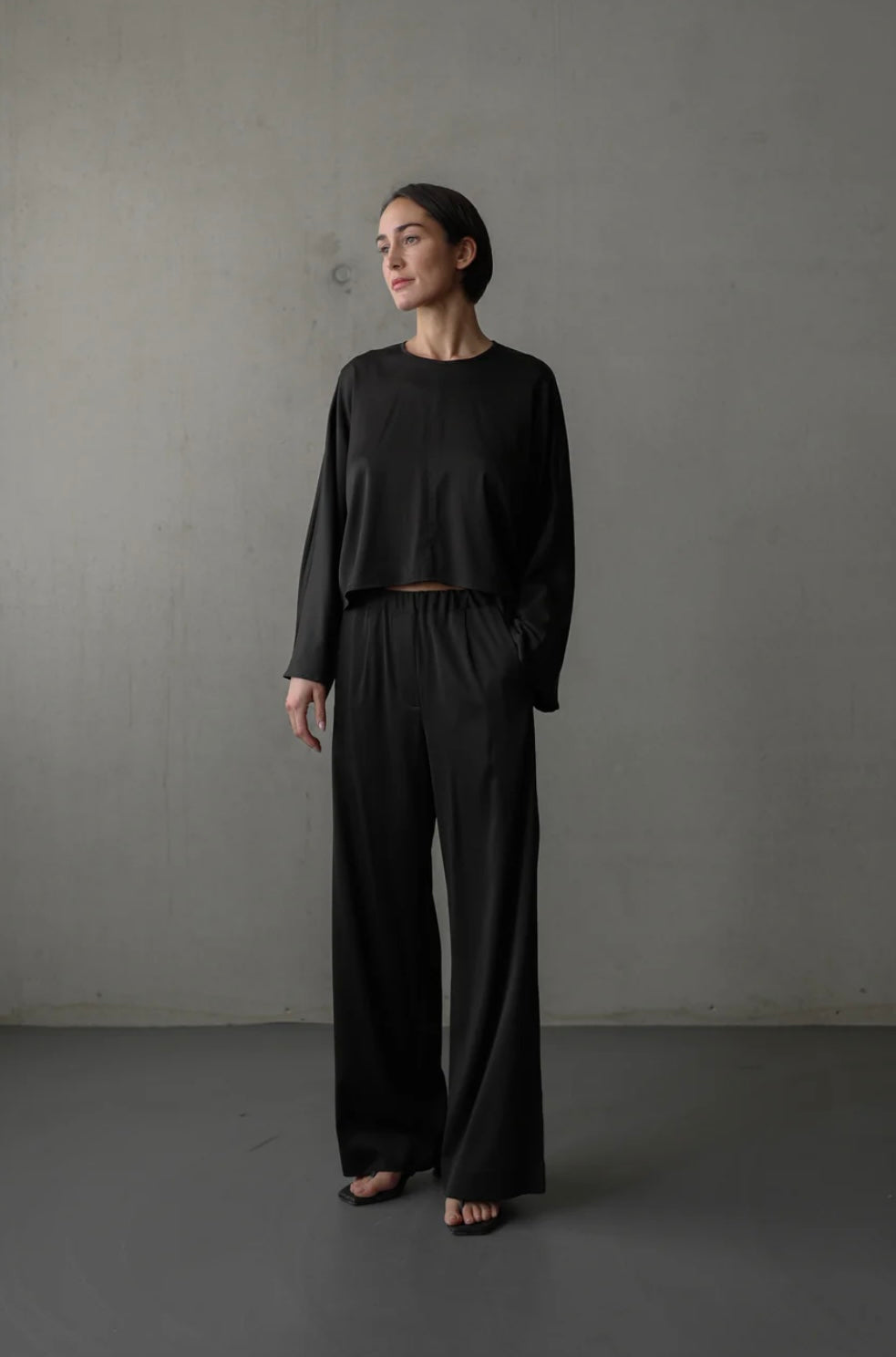 Losvallende blouse met een mooie valling. Kleine knoopsluiting op de rug. Draag het met de Luz’CL broek.