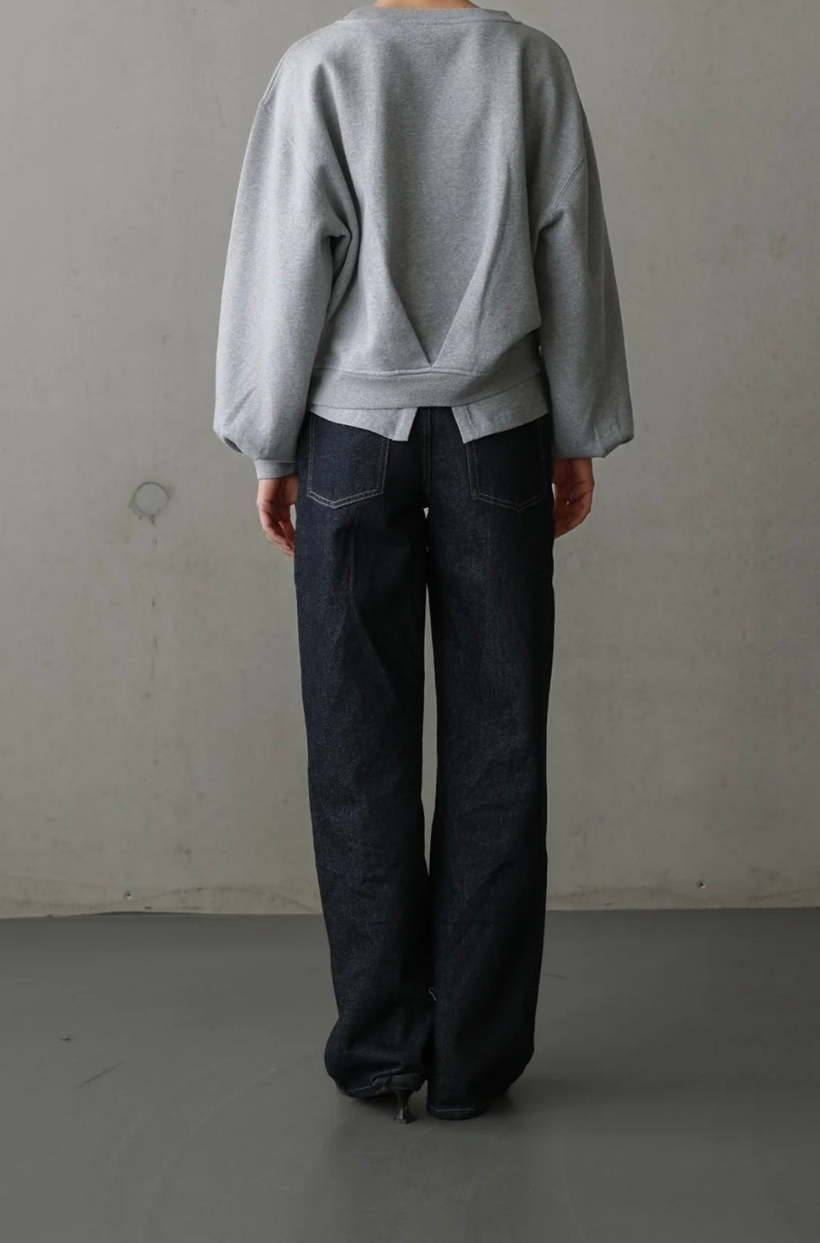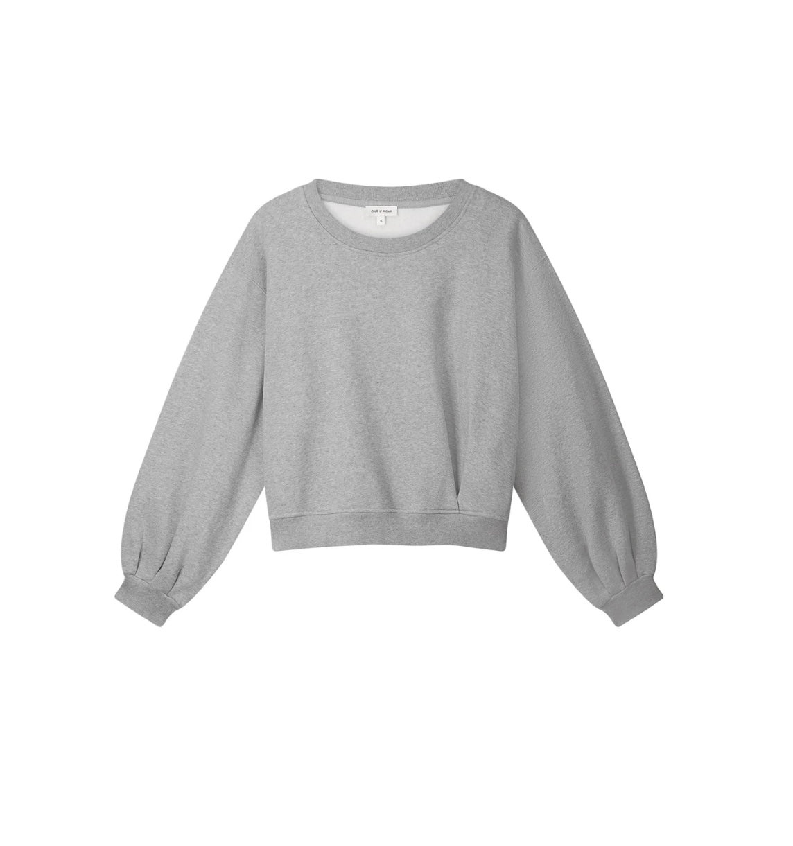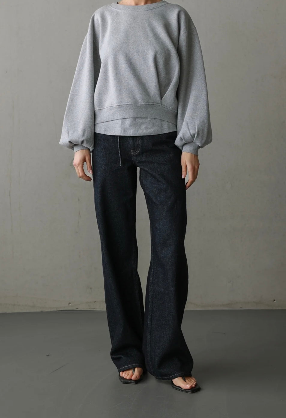 Zachte katoenen sweater, losse pasvorm en pofmouwen, afgewerkt met een plooi aan de voorkant en achterkant.