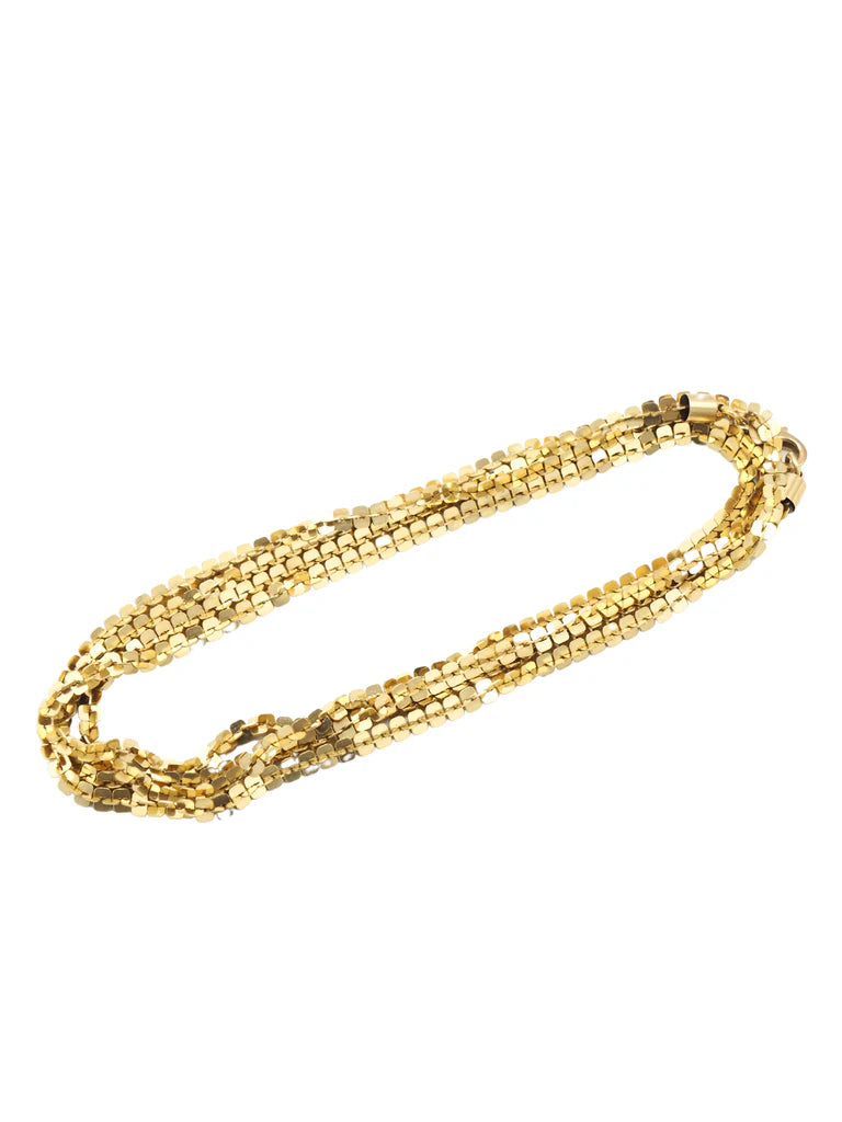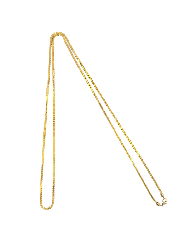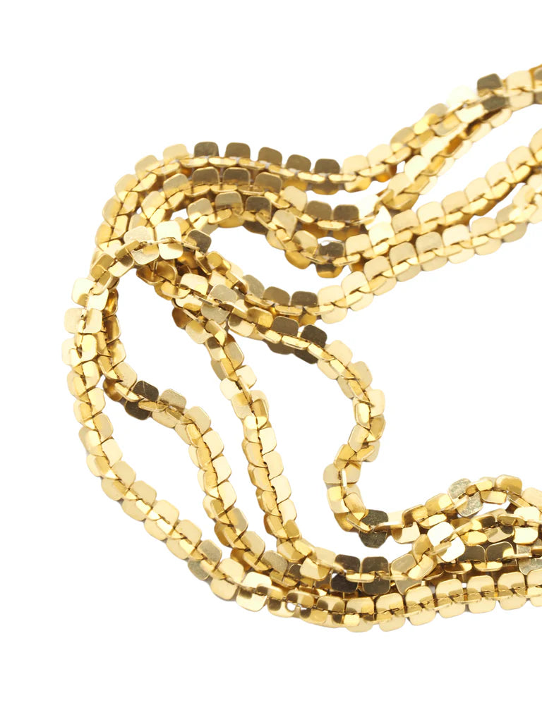 Extra lange ketting, gemaakt van een strook vierkante mini stukken, van messing met verguld of rhodium.